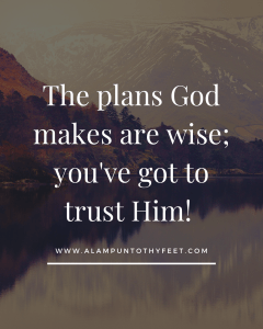 Let us take a moment and reflect…how many times have we, in all of our wisdom, made plans that failed to materialise?